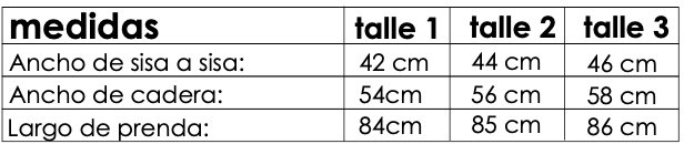 CURVA DE TALLES: 1 - 2 - 3 TELA: Lino COMPOSICIÓN: 100 % Lino